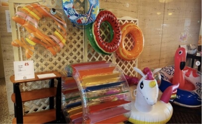 ご宿泊のお客様にホテルすぐそばの番神海水浴場で利用できる海で遊べる浮き輪などの貸出を行なっております。海水浴場の海開きのシーズンは是非ともご利用くださいませ。(夏季限定)